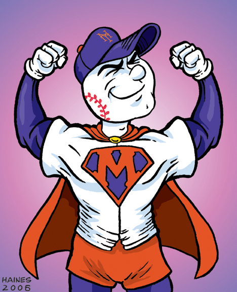 And why shouldn’t he be? Bolstered by a four-game lead, a .677 winning percentage and the long overdue vanquishing of the corrupt Coxmen, he arrives in an unsavory city determined to turn the nefarious Phanatic even greener with envy. Aided by his trusty superfriends Pedro Man, The Glavinator and Steve Trachsel (sorry, he’s just not all that dynamic), Mr. Met will twist Philadelphia bats into pretzels and prevail in the fight for truth, justice and the National League East!