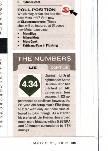 Whatever the outcome, it’s pretty cool to have opened the mailbox, torn into my favorite magazine, turned to the Mets preview and seen our name pop out. The other ones, too. A blog victory, indeed.