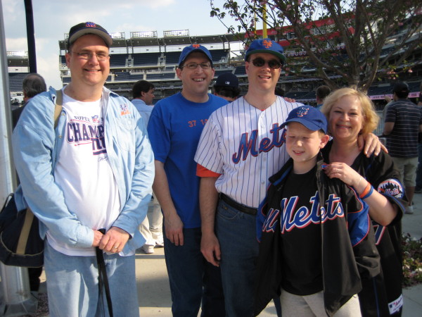 Mets fans were just happy to be anywhere after losing three in a row in Philadelphia and Chicago, but these Mets fans would be even happier hours later when their team would defeat the Nationals in Washington’s newest monument. From left to right, well, there’s me (wearing my Super Bowl Champion Giants shirt to subliminally annoy Redskins fans), my D.C. facilitator and well-numbered friend Jeff (formerly of Long Island, lately of Maryland) and the Chapmans Kevin, Ross and Sharon. We were by no means the only Mets fans at Nationals Park last Wednesday. People love it when New Yorkers descend on them en masse, however.