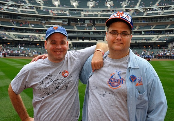 Jason and Greg on the warning track for GKR Day, our final meeting at Citi Field in 2009. Here’s to shaking hands there again with a happier place in the standings — and to keeping the Mets fires burning in these bloggy precincts this winter. Photo courtesy of the incomparable David Whitham.