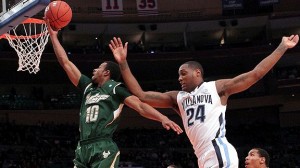 My alma mater won’t see the Big Dance. It will be lucky to see a square dance. I’m guessing that by this time tomorrow, all they’ll be seeing is the plane home to Tampa. But by gum, after trailing Villanova by 16 at the half on the opening night of the Big East tournament, the University of South Florida Bulls stampeded back and, with 5.1 seconds left, took a one-point lead, thanks to the clutchest of layups from No. 10 (above), Anthony Crater.