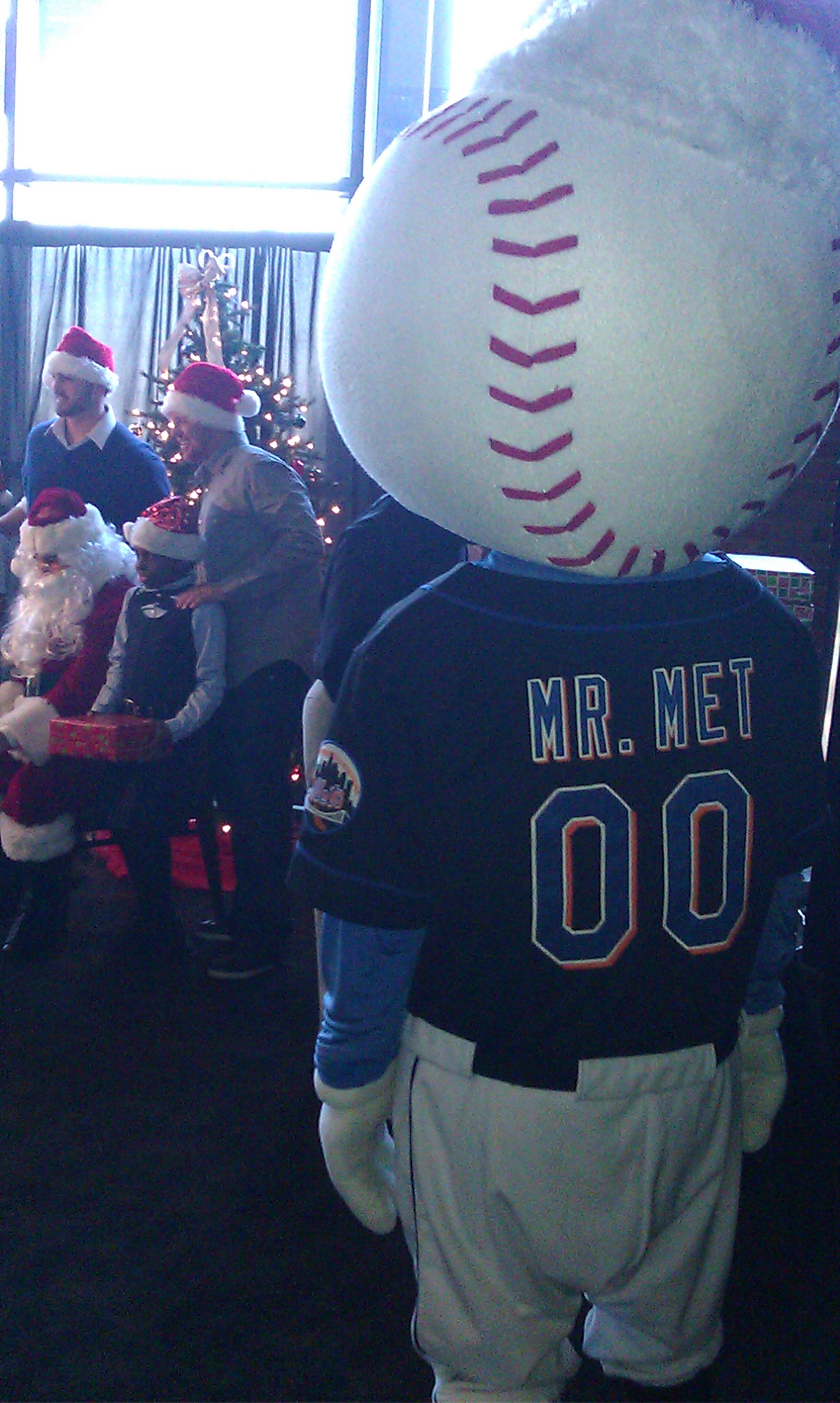 “Assuming I don’t get caught for letting some kid sneak in here with me, I’m going to stand behind a curtain with a bunch of other bloggers and writers and reporters and at some point, after the Santa stuff, the PR people will shuttle a few Mets in.”
