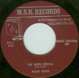 The Dick Clark 20 Years of Rock N’ Roll double album from 1973 included the front page of the Post announcing the Mets’ world championship in 1969 part of its gatefold art, indicative of what a surpassing cultural moment, not just pop cultural, the Mets winning it all was. Though they didn’t make it as tracks in the Clark-curated collection, two songs in the aftermath of the 1969 World Series that celebrated the most unlikely championship ever made themselves known to us a mere 51 years later: the Calypso-flavored “Mets” by the San Joe Trio (which namechecked several of the champs); and the garage-rocker “The Mets Special” by Rodd Keith (sounds a little like Eric Burdon and the Animals).
