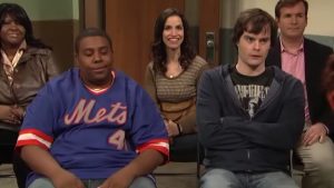 In his first appearance as a Saturday Night Live cast member, during host Jack Black’s monologue/musical number on October 4, 2003, Kenan Thompson wears a contemporary Mets road jersey.