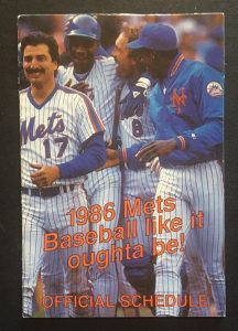 All we need is Gary Carter! If we didn’t think quite so specifically, we were willing to identify the missing piece once it was delivered to us. We didn’t give up nothing, mind you. We gave up our longtime starting third baseman (turned recent shortstop) Hubie Brooks; our promising rookie backstop Mike Fitzgerald; an outfielder who’d hit .407 in a September callup, Herm Winningham; and one of our many talented pitching prospects, Floyd Youmans. Every one of those fellows would contribute to the Expos, yet the trade was a win for the Mets. Ninety wins plus Gary Carter and assorted other additions equaled CAN’T WAIT! for the next four months.