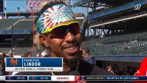 • Lindor was a big deal in Cleveland for a reason and is a big deal in New York for a comparable reason. The man comes through. Even after interrupting his pregame preparation to accommodate everybody. Even while having to wear an olive drab cap that doesn’t go with his dyed curls (or anybody’s natural ones), let alone black jersey. Even when the Mets appeared in various states of dead and desperate.