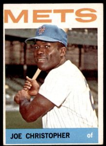 The scouting report I have cobbled together regarding Joe Christopher [1]’s New York Mets career of 1962 through 1965 is he could run pretty well; he could hit pretty well; fielding was optional; and none of it much mattered, because to those who fell hard for the early Mets, Joe’s most outstanding tool was personality. Anecdotal evidence suggests it was off the charts. I wasn’t a first-hand witness, but I don’t think I’ve come across any player from the New Breed days whose name more often elicits a response of “he was my favorite.”