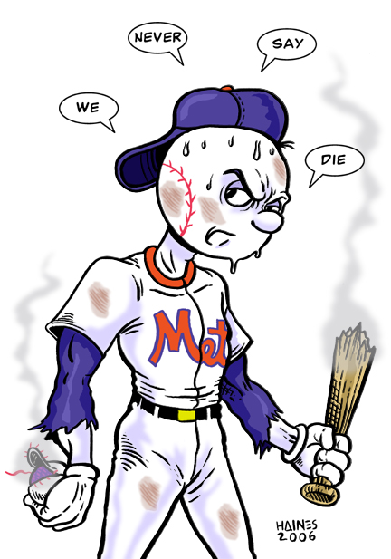 | Normally a blowout loss in the making that gets close enough to become a frustrating coulda-been win leaves me in a bad mood. But I liked what I saw in Toronto Saturday. Not the falling behind 6-0 and the skewed removal of Orlando Hernandez at the umpires’ behest, but the battling back against Roy Halliday, the continual chipping away at a big lead, the continued awesomeness of Reyes and Wright, the rescue squad work of Darren Oliver and everybody’s never-say-die attitude. Yeah, Valentin and Nady had awful at-bats with the bases loaded in the eighth and no, nobody did a damn thing against B.J. Ryan (why didn’t we sign him instead of Wagner?), but they didn’t take the afternoon off. Good on them.