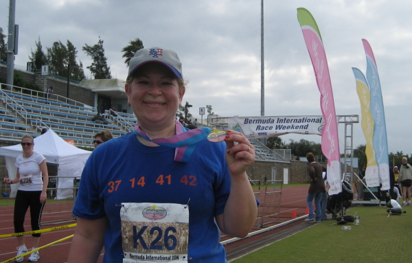 The most versatile t-shirt on earth just got a pretty good workout in Bermuda, the fourth nation in which The Numbers have been photographed (fifth, if we count Texas separately). The occasion was, as the sign in the background suggests, Bermuda International Race Weekend, and our wearer of the hour, Sharon “Inside Pitcher” Chapman, went the extra mile in completing the 10K course and spreading the gospel. “Several people watching the race asked about the numbers,” Sharon reports, “and were supportive when I told them that they were the Mets’ retired numbers.”