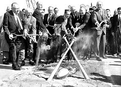 On October 28, 1961, eight dignitaries in suits — including Mayor Bob Wagner, master builder Bob Moses and future villain Don Grant — plunged spades into the ground and touched off the beginning of construction on a project tentatively titled Flushing Meadow(s) Stadium. It took 902 days to get from ceremonial shovels to the first official pitch thrown on that site, one fired by Jack Fisher of the New York Mets to Ducky Schofield of the Pittsburgh Pirates. By then, April 17, 1964, the structure in question would be called Shea Stadium…and the pitch from Fisher would be called a strike by home plate umpire Tom Gorman.