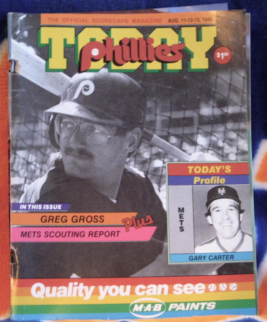 I followed through, at last, in the summer of 1986. It was almost spur of the moment — spur of the four days, at any rate. The weekend after my friend Fred’s first Mets game ever (as God was his witness, he had no idea one could just walk up to a baseball stadium and purchase a ticket), I upped the ante. Hey, I said, after a couple of beers at a barbecue, the Mets are in Philadelphia this week, we should just, like, GO.