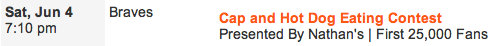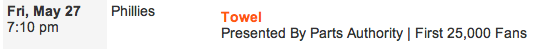 The giveaway schedule looks mighty sparce, I find it hard to believe it’ll stay that way. I remember the promotional schedule showing up later and later every year (ticket sale dates too) and having late additions. So we’ll see again. As you mentioned, bigwigs like Pepsi haven’t sponsored anything yet. Maybe they’re bickering over price, trying to work a discount?