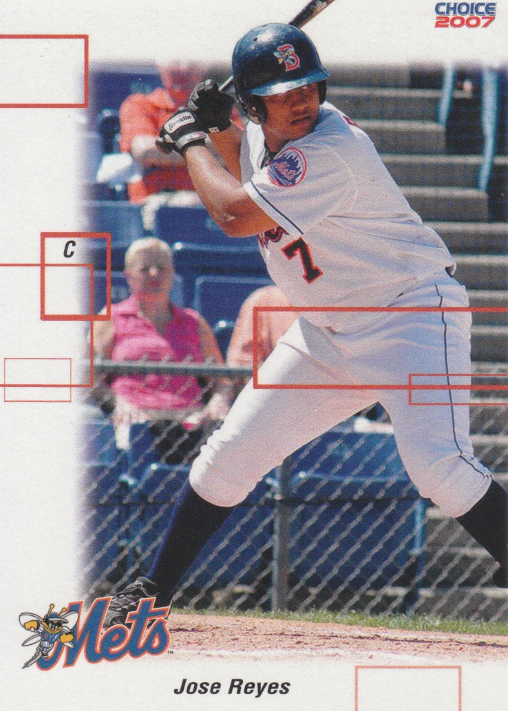 We’ll see how the last item progresses, but all the others got accomplished. In Virginia, I was thumbing through a fan of long-forgotten cards and had two happy discoveries, minutes before the boxes would have gone into the attic, likely never to be seen again. One was a 2007 Binghamton Mets card for Raul Valdes, whose previous card in The Holy Books had been a Bowman card showing him in a Cubs uniform and identifying him as Raul Valdez. I grabbed that one for transport back to New York, then noticed something else — a 2007 Binghamton card of Jose Reyes. Wearing No. 7 and everything.