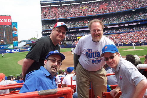 Doesn’t matter now. What does is the four of us got to sit in somebody’s corporate field box on the third base side of Shea Stadium and watch baseball, talk baseball and thoroughly enjoy baseball together. Knowing that and remembering that — despite the sadness that has intruded on this picture twice in 2011 — reminds me (the man in the upper left, if you’re scoring at home) what a fun afternoon we had and what a good deal this Mets fandom thing is…one-nothing encounters of the wrong kind notwithstanding.