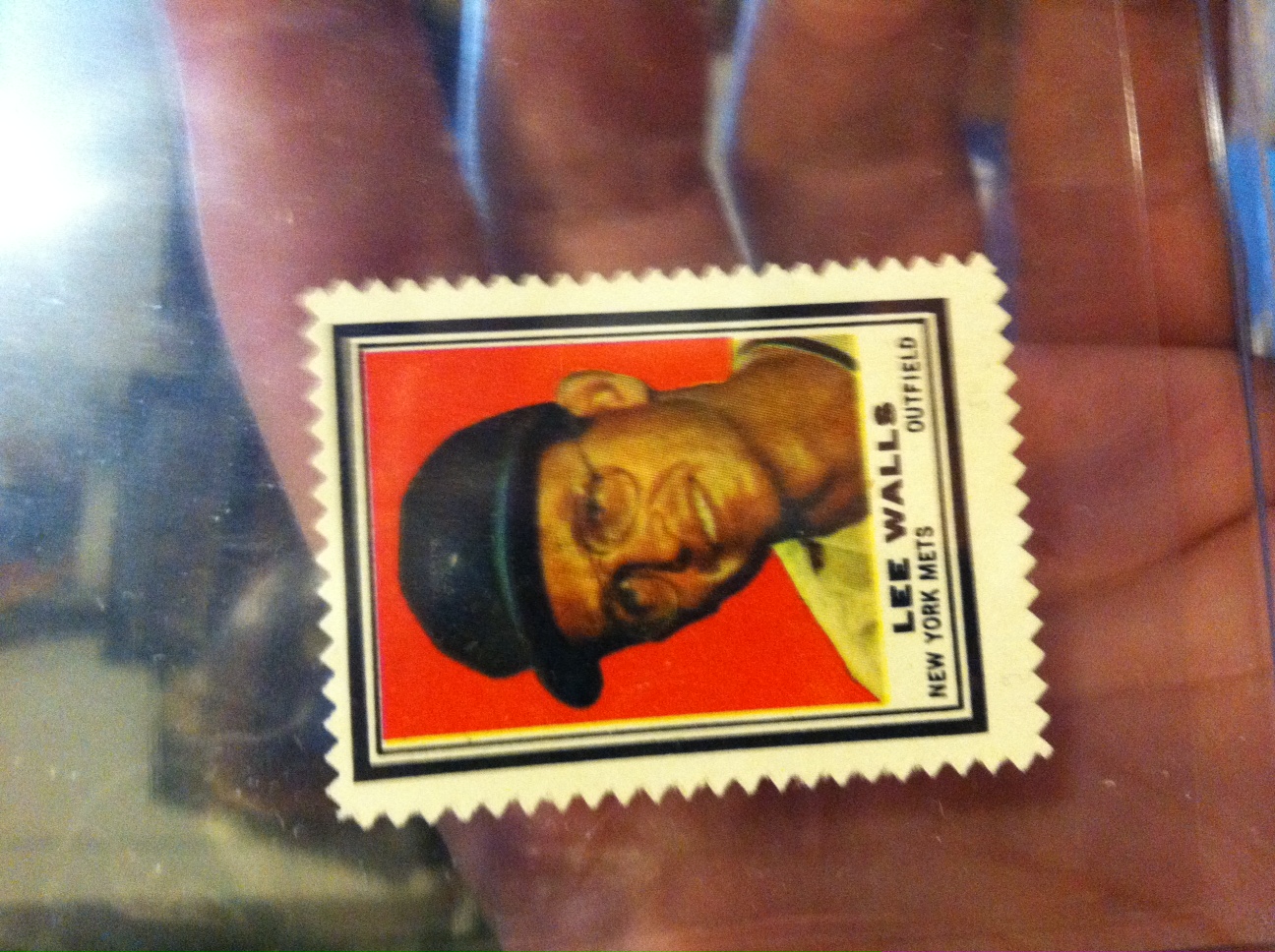 But Walls did make the Mets in one Topps line — Topps Stamps. He’s No. 140, right between Bob L. Miller and Don Zimmer (who appears in a Mets hat on his ’62 Cincinnati Reds card, but that’s another story). I’d never heard of Topps Stamps, but I couldn’t resist the pull of Lee Walls identified as a New York Met. When the stamp came around on eBay, I bid on it, steeled myself not to go too crazy over a niche product featuring a guy who’d never actually worn orange and blue — and won it for the grand total of 99 cents.