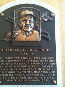 Joshua and I strolled among the plaques for a good hour or so. He wanted his picture taken with the Negro Leaguers he knows from We Are the Ship, a request I happily indulged; I pointed out the Hall of Famers who’d been Mets, took tons of snapshots, and alternated between respectful nods (Ruth, Lajoie, Wee Willie Keeler, Jimmy Foxx, Cobb, Mantle), affectionate rubs (Gehrig, Aaron, Walter Johnson, Gary Carter, Gwynn, Brett, Bill Veeck, Mays, Satchel) and moments of contemplation (Seaver, Mathewson, Teddy Ballgame, John McGraw, Casey, Branch Rickey, Jackie Robinson).
