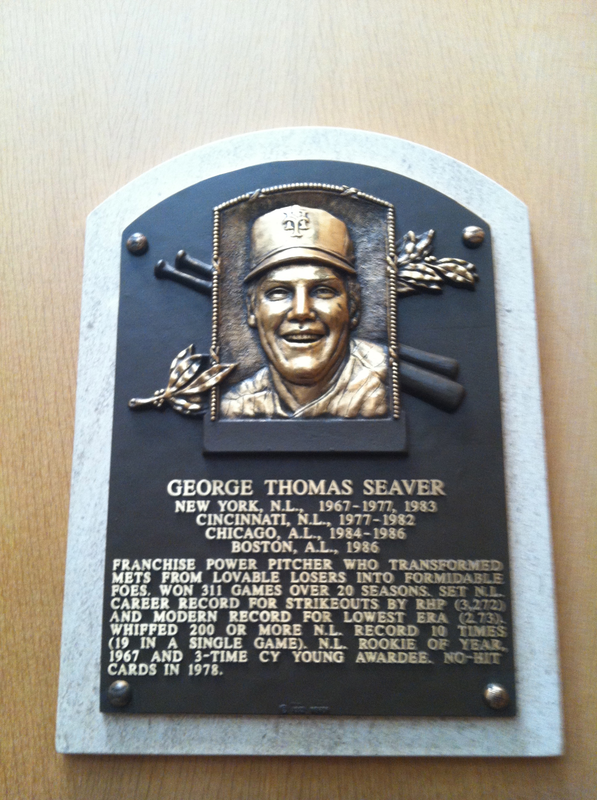 At the Hall of Fame, it becomes clear that without Tom Terrific, the Mets are the Blue Jays – an expansion franchise that has had a little bit of success. WITH Tom, the Mets get their two seconds when the GREATS of the game are mentioned. Your Mets buttons burst during the videos of the “ALL TIME GREATS” they show in the Grandstand Theater – the procession is Mathewson, Johnson, Feller, Gibson, SEAVER (YEAH TOM! HE’S OURS!), Ryan, Palmer…