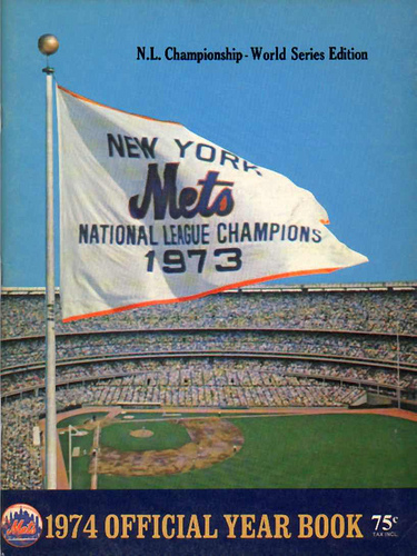 Thursday night at 6:30, SNY favors us with the 25th installment of the Mets Yearbook series, the 1974 edition. If the editing hasn’t been too fierce, you can look forward to not just highlights not of the 1974 Mets season, but the Mets’ postseason trip to Japan (during which the recently acquired Joe Torre made his Mets quasi-debut). Why would a fifth-place, 71-91 team be invited to represent Major League Baseball? Because the invitations for such things would go out well in advance, and when the Mets were invited, they were still defending National League champions.