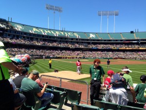 For all this, the park itself isn’t too bad — the view of the mountains was destroyed long ago by Mount Davis, but the music’s pretty good and the fans are great. I can’t say that enough — we were surrounded by East Bay gangbanger-looking dudes, merry bearded drunks, families with hyperactive kids and old sun-leathered military types. Everybody got along swell and everybody was mad for the A’s, who paid them back by stomping the Nationals behind a pair of three-run homers from Derek Norris. Once you’re inside the O.co, the game’s the thing, and that’s not all bad.