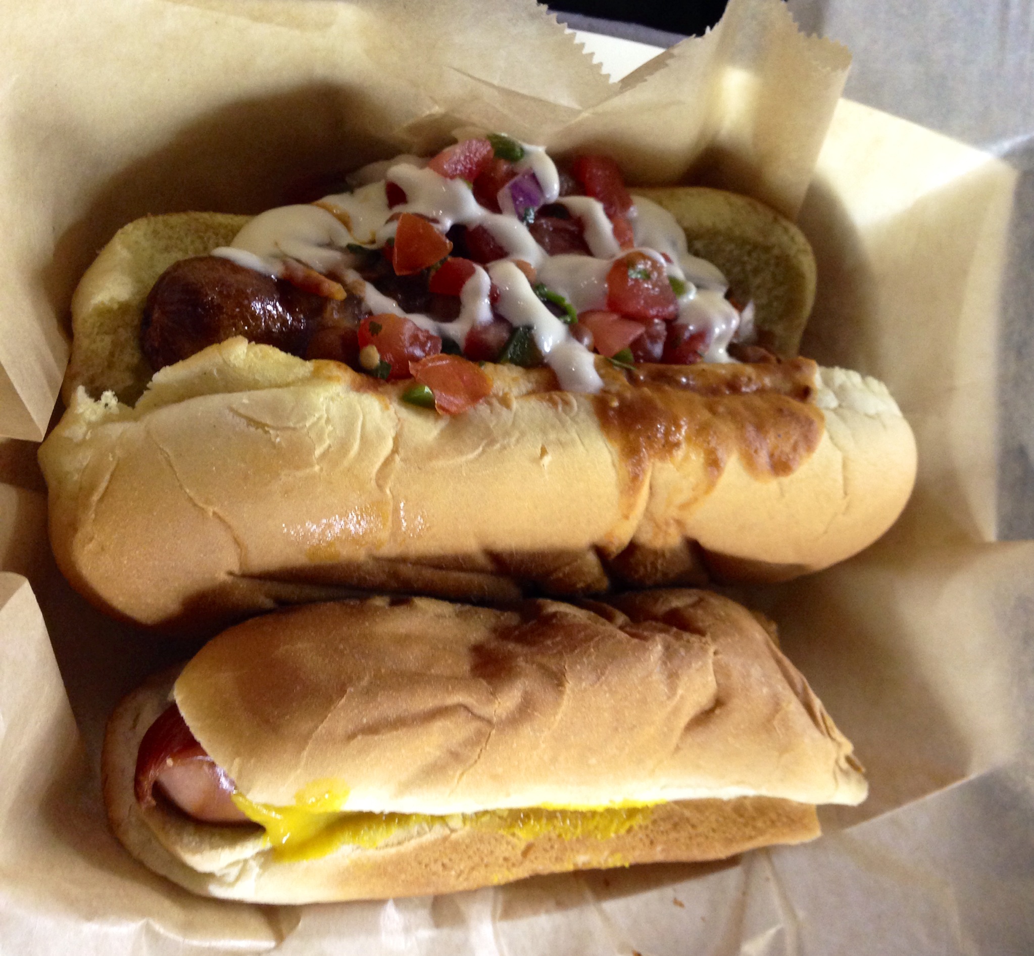 Chase Field is also a rarity among today’s ballparks in that the people who run it have thought about fans of more modest means. A lot of the concession stands have value items — you can get a hot dog, 12. oz drink or a popcorn for $1.50, and a beer for $4. For a family that doesn’t have a lot of money but wants to take kids to the park, that can make a big difference — the parents don’t have to panic about spending a week’s pay at the park and the kids don’t feel like they’re missing out. I was curious, so I tried the $1.50 dog alongside the $7 Sonoran dog, a bacon-wrapped gutbomb with various Mexicanish stuff. The $1.50 dog is small and honestly not great, but a kid would munch on it perfectly happily. Kudos for the D’backs, and another idea I wish the Mets would steal.
