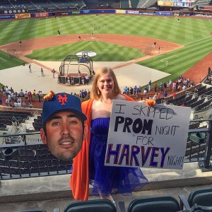 Melanie’s been a Mets fan since birth. I’ve seen the pictures. I’ve seen her in action. I’ve seen her keep score. I’ve seen her repurpose the rituals of prom night and put them to vivid use for Harvey Day. And now I’ve seen how she puts a bow on her high school career.