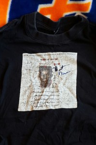 I have a t-shirt that features a likeness of Monte Irvin’s 1954 baseball card, along with a bullet-point bio, his actual autograph and the thanks of the New York Baseball Giants Nostalgia Society for giving his time to the group. I don’t wear it too often because it’s a little thick in the fabric, plus I never wanted to spill anything on him. He’s Monte Irvin. He’s in the Hall of Fame.