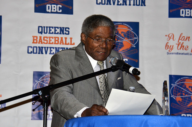 The image of the one and only Cab Calloway suddenly and magically decked out in the most classic of threads flashed through my mind three winters ago when walking through the door of McFadden’s at Citi Field, site of the second annual Queens Baseball Convention, came none other than the Glider, Ed Charles. I don’t know how Ed Charles usually dressed, but at our instant of contact, he was the epitome of dressed to the nines. Mr. Charles raised QBC’s style quotient exponentially all by himself. It wasn’t CGI and it wasn’t exactly a plot twist. We who had constructed the program for that year’s QBC had promised Ed Charles would show up to receive an award. Except it was getting late, I hadn’t heard from Mr. Charles and I wasn’t exactly sure if we would be seeing him, never mind seeing him look so sharp.