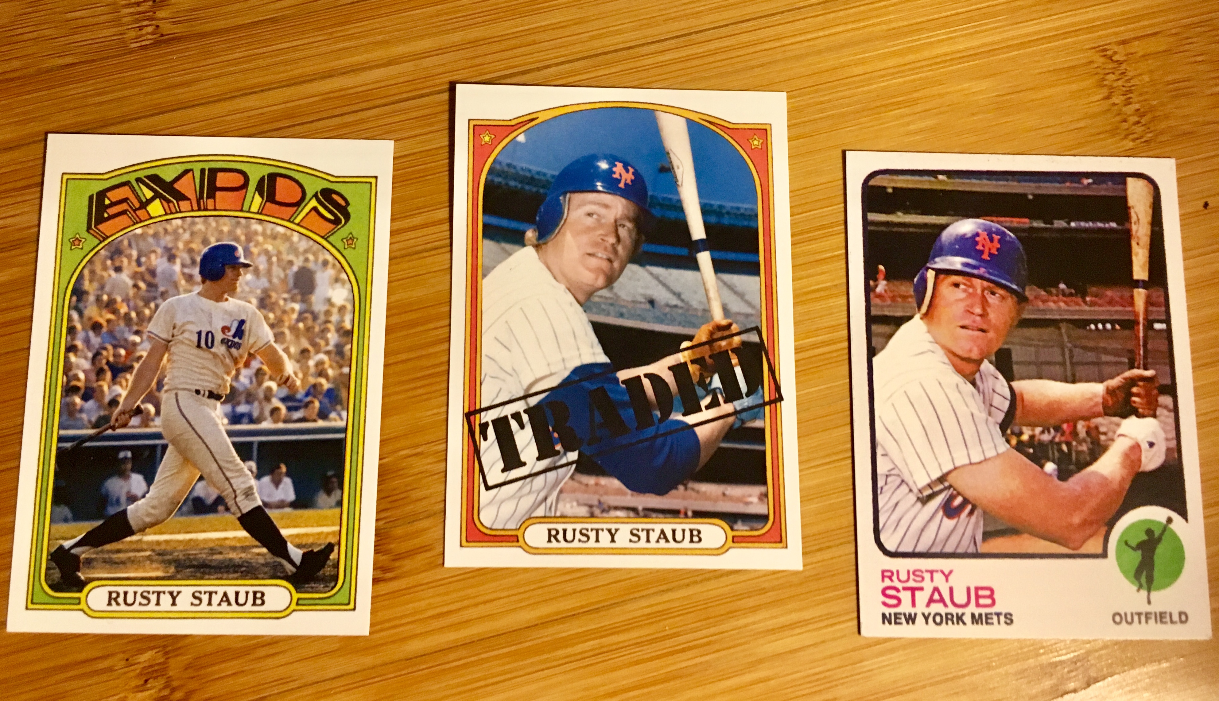 Then he seemed to be everywhere. I saw him in the San Francisco airport and managed not to make a pest out of myself that time. In New Orleans a cab driver had played high-school ball against him and regaled me with Staub stories, for which I happily gave him a ludicrously outsized tip. When I started making custom cards for missing Mets who hadn’t got their due, few creations satisfied me more than the cards that filled in Rusty’s missing years.