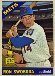 Swoboda managed the difficult and dubious feat of hurting his development as a ballplayer by alternately thinking too much and not at all. (Years after he retired, he admitted he still had nightmares about facing one of the great hurlers of the ’60s and not being able to get set in the batter’s box.) He wasn’t always popular with teammates, who were annoyed by his on-field mistakes and his off-field gift of gab. When reporters entered the clubhouse after a Met win, it wasn’t uncommon to hear someone yell out “Tell them about it, Rocky!” It should come as no surprise that one of his best friends on the team was the irrepressible, quotable McGraw. (The other was Kranepool.) But Swoboda was pretty quotable himself: In ’69, he was booed after striking out five times in one game, and opined that “if we lost, I’d be eating my heart out. But since we won, I’ll only eat one ventricle.”