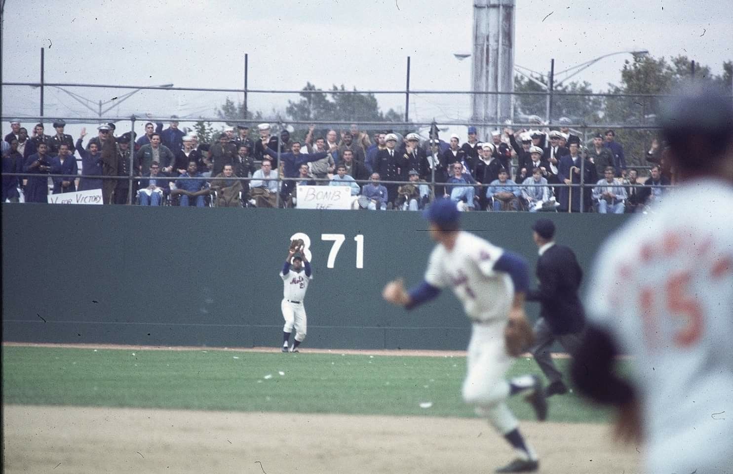 The celebration begins — Jerry Koosman jacknifed in Jerry Grote‘s arms while Ed Charles dances happily alongside, fans pouring onto the field, Jones and Tommie Agee seeking safety in the visitors’ bullpen — but first there’s a moment of stillness, of hush. That moment’s simultaneously gone in a blink and seems to linger, to draw in everything that led up to it.
