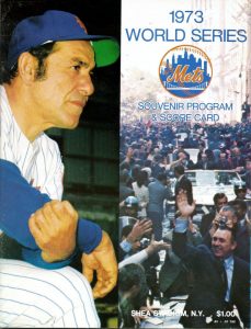 The name “Oakland” doesn’t translate in some ancient tongue to “land beyond belief,” but that’s where the Mets wound up. The team that rode stifling starting pitching and the You Gotta Believe mantra from last place most of the summer to the precipice of a second world championship came up one game short in the Oakland Coliseum. Jon Matlack, who had been so good in Games One and Four, not to mention Game Two of the NLCS, didn’t have his best stuff. The lefty didn’t last three innings, having been taken deep for a pair of two-run homers by Bert Campaneris and soon-to-be-named MVP Reggie Jackson. Ken Holtzman and Rollie Fingers teamed to tame the Mets into the ninth inning, but apropos of the way the 1973 Mets kept pushing from the rear, New York brought one run in and put two runners on in the ninth, provoking Dick Williams to call on Darold Knowles to extinguish their final fire. Knowles became the first pitcher to appear in all seven games of a World Series. With everything on the line, he could have faced potential pinch-hitter Willie Mays, the legend on the edge of retirement, but Yogi Berra stuck with regularly scheduled batter Wayne Garrett. Garrett popped up and the A’s finally deflated the Met balloon that stayed aloft longer than anybody would have guessed when they themselves were stuck in the basement as late as August 30.