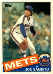 In the mid-1980s, a few years after Torre was asked to stop managing in Flushing, the Mets had grown a lot closer to reaching one of those tantalizing World Series. To perhaps put them over the top, they brought in another local Joe, lefty Joe Sambito. Like Torre, Foy, Pignatano and Ginsberg, he was born within the five boroughs. From 1979 to 1981, he was one of the best closers in the National League, playing a key role in the Astros’ rise to prominence. Then he got hurt, winding up on the Mets for a spell in 1985. His brief tenure is recalled mainly for his having pitched in the infamous 26-7 Mets loss at Veterans Stadium when he gave up eight earned runs in three innings.