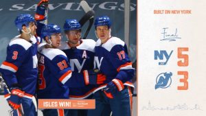 The Islanders were winning by four. Then they were winning by two, and I wondered what kind of horrible luck I was bringing them. Yet they held on, allowing them to raise their sticks to a chorus of YES-YES-YES-YES, which is the sweetest sound to come out of Long Island since Debbie Gibson first hit the charts.