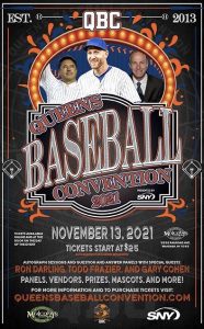 This year’s version takes the field Saturday, November 13, running from 11 AM until 6:30 PM at Mulcahy’s in Wantagh, 3232 Railroad Ave. — right by the LIRR station and just off of Wantagh Ave. slightly north of Sunrise Highway. QBC has lined up its usual sweet slate of speakers, panels and vendors, including Gary Cohen and Ron Darling; Todd Frazier; Omar Minaya; Jay Horwitz; Once Upon a Time in Queens auteur Nick Davis; Mr. Met (!) and a whole passel of people who love to talk about the Mets with Mets fans. Metsopotamia has come alive at QBC in Januarys past, whether in Flushing or Astoria. That familiar fan-fueled vibe is sure to carry forward as it puts down stakes for a Saturday in Nassau County.