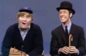 British comedy team Tony Hendra and Nick Ullett performed “The Agony of a New York Mets Fan” on The Ed Sullivan Show, August 7, 1966. Hendra donned a Mets cap and became not just an American, but a prototypical New Yorker. Ullett portrayed “an unintelligent, inquisitive, twittering Englishman — in other words himself”. Sitting on stage as if at Shea Stadium, Hendra’s Mets fan suffers both the Mets’ mishaps and his grandstand neighbor’s clueless queries. Key exchange: