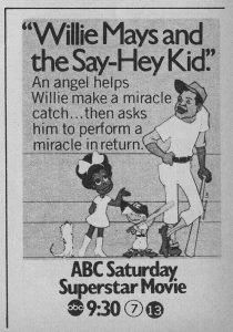 An animated version of Shea Stadium appears in Willie Mays and the Say-Hey Kid, which aired on October 14, 1972, as part of The ABC Saturday Superstar Movie series. In it, Willie has a guardian angel named Casey. Willie provides the voice to his character.