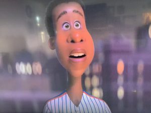 A great example of how the Oscar’s Caps works when it works best came at the end of 2020, when we presented the ninth annual edition of this feature and multiple readers piped up to let us know about Soul, the Pixar movie that had just debuted on Disney+, and why it was right up our alley. Sure enough, within the narrow window when I had access to a subscription, I was able to see for myself that, in a flashback scene, our hero Joe Gardner wears a 1980s-style Mookie Wilson jersey, replete with racing stripe (although designed with buttons, which weren’t a part of the racing stripe uni motif until 1991). Mets posters are visible on the wall of Buddy’s Barber shop as well.