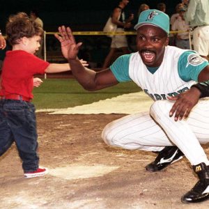 Within two weeks of the birth of the Marlins, Chuck Carr established himself as every day center fielder and leadoff hitter. By the time the Mets showed up at Joe Robbie for the Tarp Game, Carr was proving the skills he’d hone in the minors could play in the majors. He had 28 steals, en route to an NL-leading 58. A member of a first-year club leading his league in something was something else. As towering as Frank Thomas’s 34 home runs soar in the annals of the 1962 Mets, they placed him only sixth in the National League.