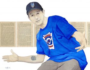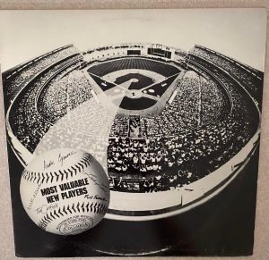 Going through the back catalogue, a Columbia Records promotional disc from 1984 titled Most Valuable New Players, including tracks from up-and-coming acts like The Outfield and Lisa Lisa & Cult Jam, has as its cover photo an overhead shot of Shea Stadium, photographed many years earlier, during its classic Rheingold ad phase. Another unexpected sighting greeted visitors to Byrdland Records in Washington, DC — nominally Nationals territory — in 2022 when they encountered a watercolor rendering of Beastie Boys’ Ad-Rock wearing his black Mets cap (“Ad Rock – The Kid – Sharp Cheddar”), as interpreted by Maryland artist Andrew Katz.