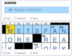 The February 6, 2022, New York Times crossword puzzle had as its clue for seven-letter 86 across “Regular at Citi Field”.