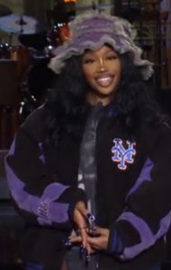 Not on the show itself, but musical guest Sza wore a black Mets jacket in the promotional spots NBC aired for the December 3, 2022 episode of SNL hosted by Keke Palmer (who was not wearing a Mets jacket).