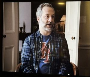 Among the many talking heads in the 2023 HBO documentary Albert Brooks: Defending My Life, only Judd Apatow thought to wear a Mets t-shirt (featuring a prominent orange NY) as he shared his thoughts with director Rob Reiner.