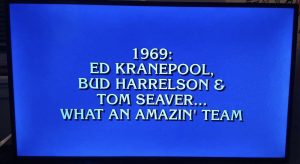 • On October 16, 2023, the 54th anniversary of the 1969 Mets winning the World Series, the Double Jeopardy answer on Jeopardy was “1969: Ed Kranepool, Bud Harrelson & Tom Seaver…What an Amazin’ Team”. (Category: “In the Baseball Team’s Lineup”)
