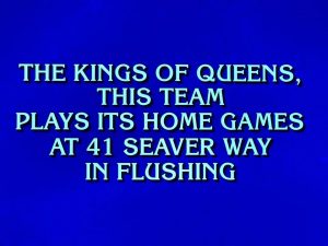 • “The kings of Queens, this team plays its home games at 41 Seaver Way in Flushing” was a clue on Jeopardy on February 16, 2023. When the contestant answered correctly, host Ken Jennings added, “Go Mets.”