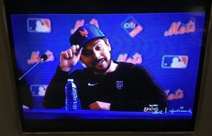 When we first unveiled Oscar’s Caps at the end of 2012, we were thinking mostly in terms of TV, film, music, stage, works of fiction. In the ensuing years, we’ve experienced some mission creep. A Mets cap or a Mets jacket or a Mets reference seeps into non-sports real life where you wouldn’t expect to find it, we make a note of that as well. To not do so would go against type.