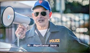 • On Hulu’s This Fool, “Clyde & Clyde, Parts 1 and 2” (Season 2, 2023), Rob Corddry, playing a cop in Los Angeles, puts on a Mets cap to convince a criminal he has just flown in from New York.