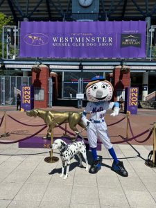 With the Westminster Dog Show’s 10th Anniversary Masters Agility Finals taking place at Arthur Ashe Stadium, just across the boardwalk from Citi Field on the first weekend of May 2023, you might have expected a Met presence, and had you, you would have been “ARF!”…make that right. Mrs. Met indeed welcomed the stylish pooches to the neighborhood. According to one witness taking in Fox Sports’ coverage of the proceedings, “There was a scene toward the end where Mrs. Met was shown bending down and petting one of the dogs, giving lots of love to her canine friend. Well, good for her, and I guess she might have walked there since it’s very close to her Mets team’s home stadium. Apparently, the dog was not freaked out by her disproportionately large head.”