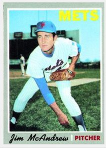 As a rookie and into the prime of his career, Jim McAndrew proved he could pitch with anybody, whatever uniform they were wearing. In six seasons as a Met, he was part of a world champion once and a pennant-winner twice. In his post-playing days, he always showed up when the 1969 Mets were introduced en masse to take his well-deserved bow. In 2015, I’m told, he paid his way to Kansas City to cheer on the most recent National League Champion Mets. Fantasy campers have warm memories of the tips they received from Coach McAndrew. Save for a brief stint with San Diego, he was literally a lifetime Met.