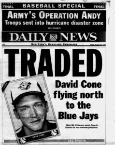 March 27, 1987: DAVID CONE traded by the Kansas City Royals with Chris Jelic to the New York Mets for Rick Anderson, Mauro Gozzo, and Ed Hearn.